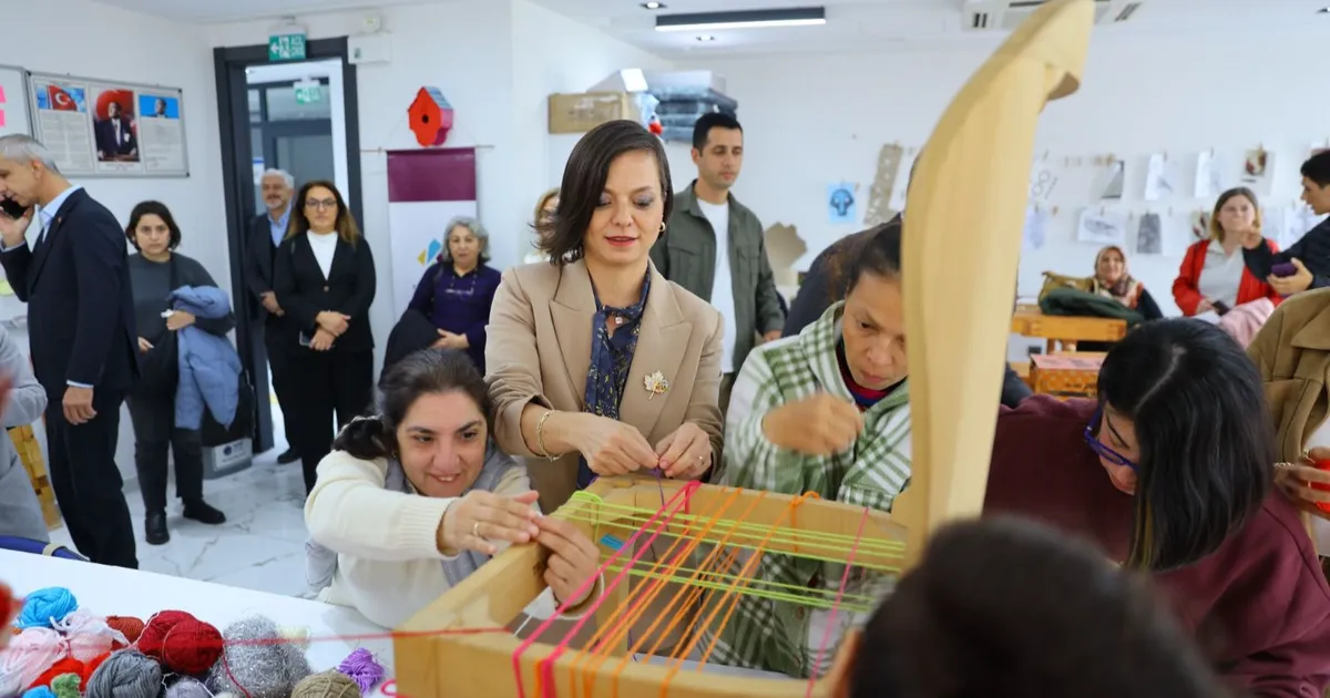 Başkan Kınay, sertifika töreninin ardından özel gereksinimli bireylerle birlikte dönüştürülebilir malzemelerden yeni tasarımlar üretti. Etkinlikte bir sandalye renkli iplerle yeniden işlevsel hale getirildi.