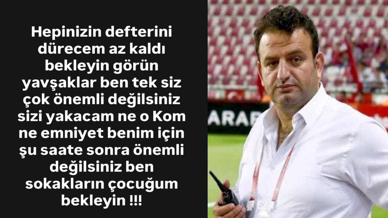 Hepinizin defterini düreceğim, az kaldı. Bekleyin, görün yavşaklar. Ben tekim; size çok önemli değilsiniz. Sizi yakacağım. Ne o KOM ne emniyet, benim için şu saatten sonra önemli değilsiniz. Ben sokakların çocuğuyum. Bekleyin!!!