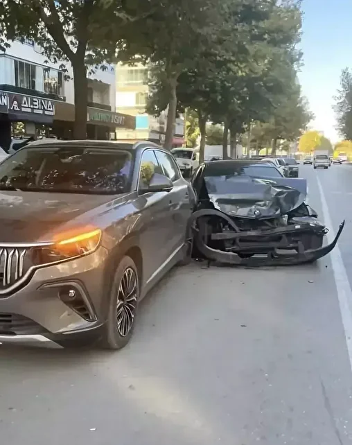 TOGG T10X’e arkadan çarpan BMW’nin ön tarafının paramparça olduğu görüldü.