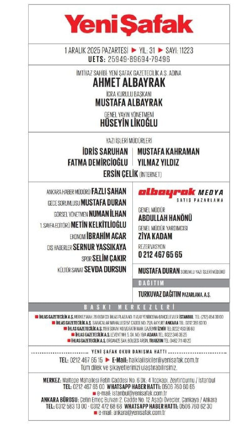 • Yeni Şafak’ta üst düzey değişim: Hüseyin Likoğlu künyeden çıkarıldı